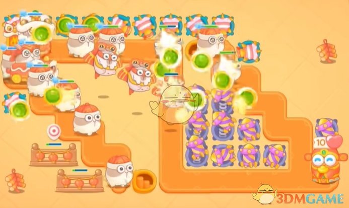 4、最后在上面和中间位置放满乌龟和火箭炮塔,即可快速通过关卡挑战;