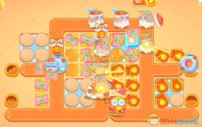 1、开局在右侧放置喷火器,左侧放置满级蝴蝶结用来清理怪物;