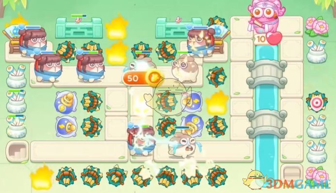4、最后将道具全部清理掉,在中间位置继续补充炮塔,建立伤害防线即可快速通关;