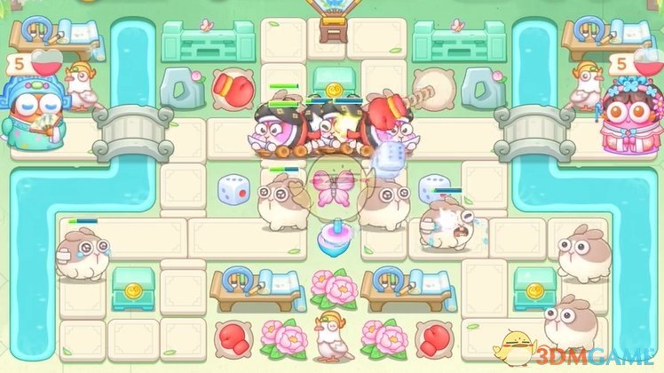 2、升级之后,清理附近道具,继续增加拳套、骰子和陀螺;