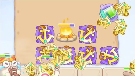 1、胡桃夹子第17关开局后左右两侧分别有一个金钩炮塔。