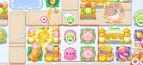 4、接着在中上方放一个汽水,没有敌人路过时可优先攻击绿色宝箱。