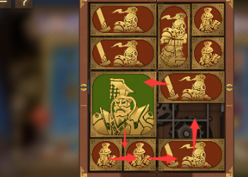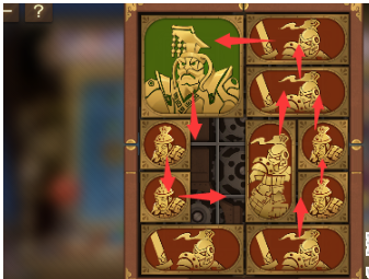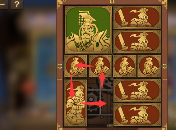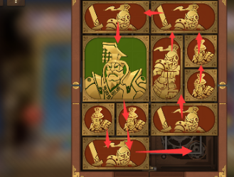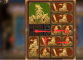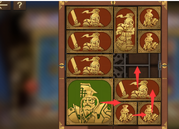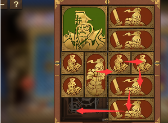 7、右下角的长方形向上移动,左下角的正方形向右移动,将军向下,中间的长方形向左移动。