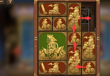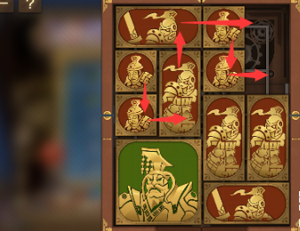 4、左下角的正方形向右移动,将军向下移动,其上方的正方形竖直排列为长方形,中间的长方形向左移动。