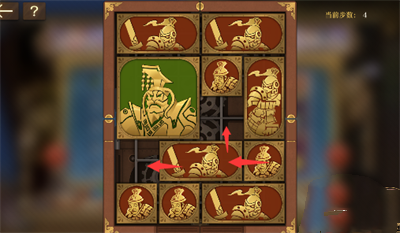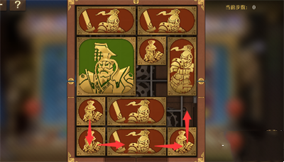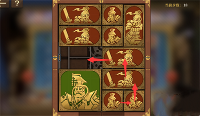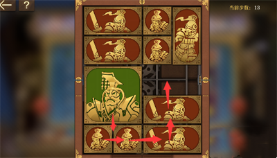 3、左下的长方形向右移动,皇帝向下移动一格,上方的全部下移,右侧的向左移动;