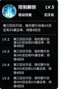 第三回合开启。临时提升自身6%攻击和3%暴击率,持续4回合