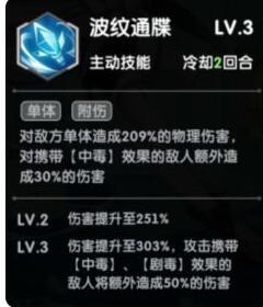 对敌方单单体造成巨额伤害,对携带【中毒】效果的敌人造成额外伤害。