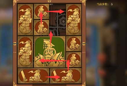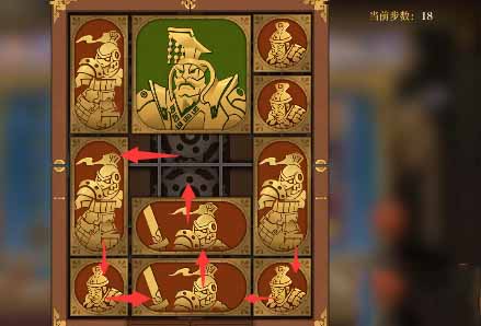 8、然后全员逆时针旋转一格,右下的小方块向右移动一格,其上方的小方块向下一格,将军先向下一格,等小方块移动完毕之后再向右一格。