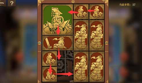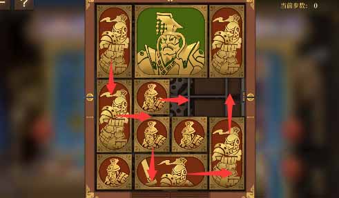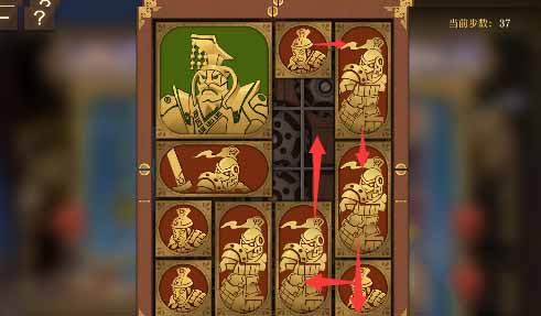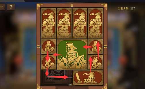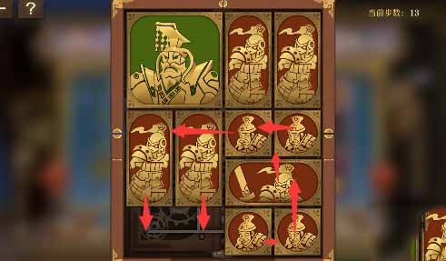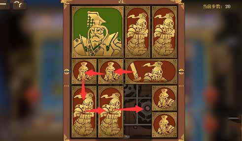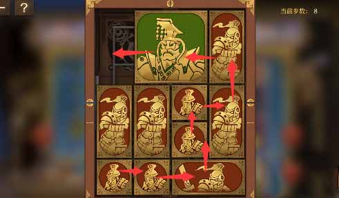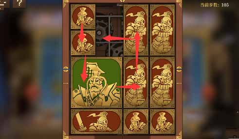 6、然后左上角的逆时针移动,让将军向右侧移动一格,左上的小方块下来。
