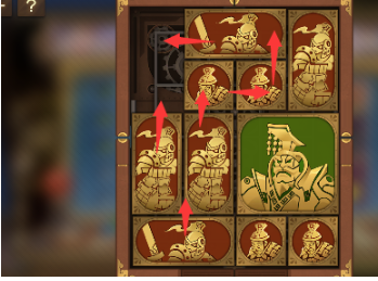 3、中间的正方形向右移动到底,左下角右数第二个长方形向上移动,左下角的长方形向右移动,将军下方的长方形向下移动。