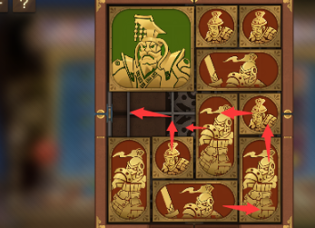 9、右上角的长方形向左,右边的长方形向上,将军向右,其旁边的长方形向右,左上角的长方形向下。