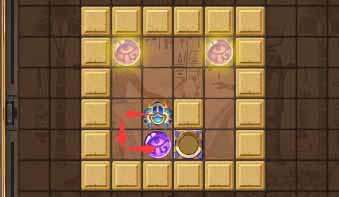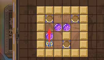 5、然后向左走到中间珠子上方向下顶珠子,然后绕到其左侧将其顶进凹槽。