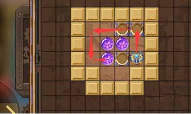 1、开局先往上走然后向左并向下到第三排珠子的左边将其推进凹槽内。