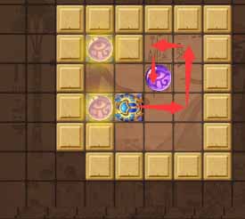 3、然后走到下方在凹槽里的珠子下方向上顶一下这个珠子,然后向左上移动将左侧的珠子顶进上方的凹槽。