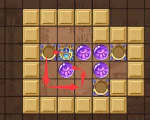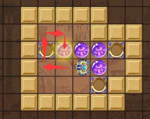 3、然后绕到左上的珠子的上方向下顶一格珠子,之后去它右侧将这个珠子顶到最左边。