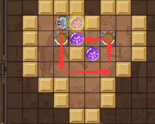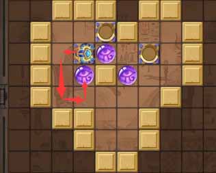 1、向右将最上方的珠子顶进右侧凹槽,然后向下顶两格下方的珠子。