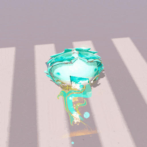 玉龙扶风跳跃时伴有绿色云雾,脚下莲花绽放。