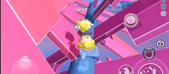2、等滚动技能刷新好了之后就可以开启技能开滚动通过粉色板块,然后回到达滚筒,在这里小蛋仔们直接走下面,下面会容易走一些,阻碍没有那么多;