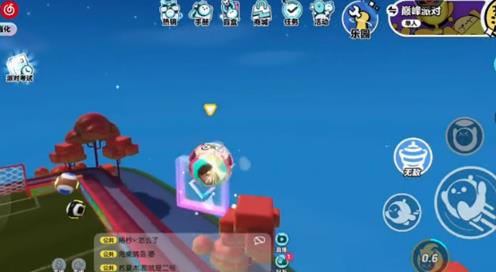 1,来到蛋仔岛的蹦蹦床子里,变成球跳上去。
