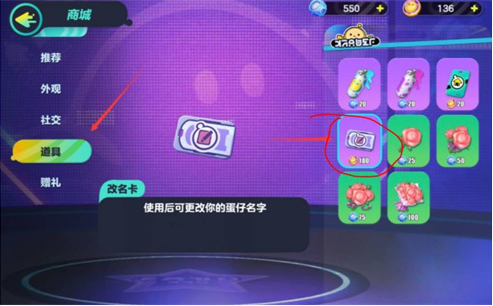 3、在弹窗界面花费180蛋币购买改名卡。