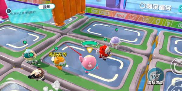 1、在这关中玩家尽量保持自己的重量值,如果重量值被打光,蛋仔在后期会被一下子淘汰。