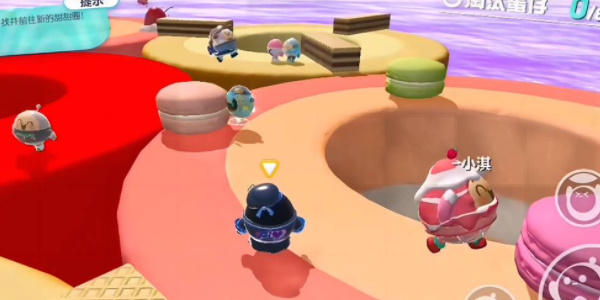 蛋仔派对找圆圈关卡地图主体以七个甜甜圈为主,蛋仔们可以站在这些甜甜圈之上,随着时间的推进,这些甜甜圈会陆续下降。下降后的甜甜圈将不能站立,如果蛋仔不赶紧离开,就会被淘汰。