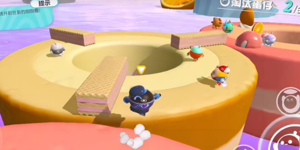 2、在图中我们需要保持走动多跳跳,防止黑心蛋;甜甜圈升降时我们可以站在中间的圈即使下沉也能快速的到达安全位置。