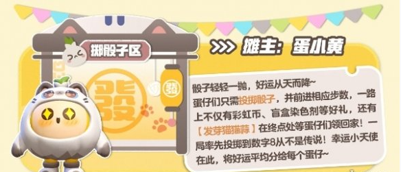 1、玩家需要前往掷骰子区,找到摊主蛋小黄,进行摇骰子。