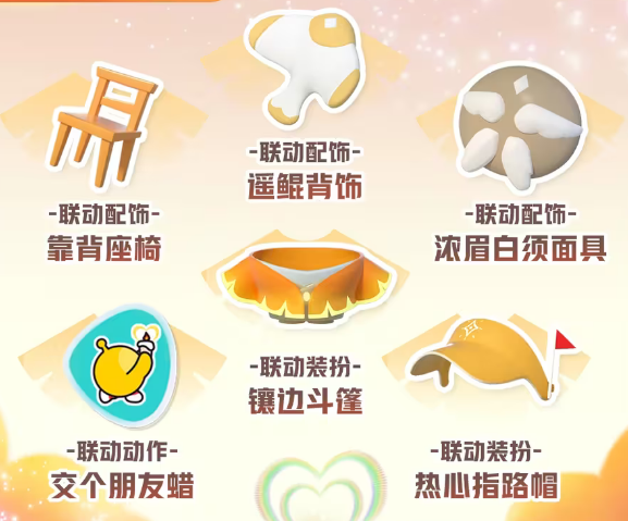 联动期间,蛋仔完成活动任务即可获得蜡烛,用以免费兑换联动装扮镶边斗篷、热心指路帽、联动配饰浓眉白须面具、靠背座椅、遥鲲背饰及联动动作交个朋友蜡!
