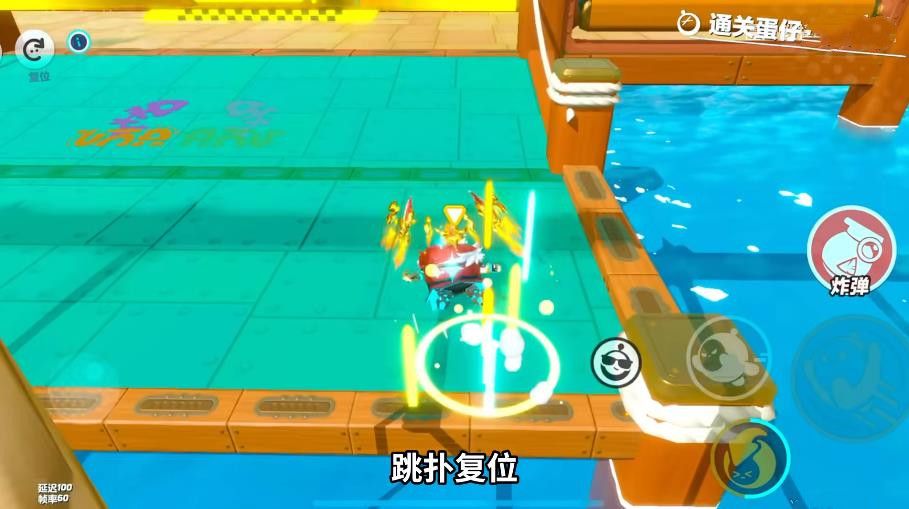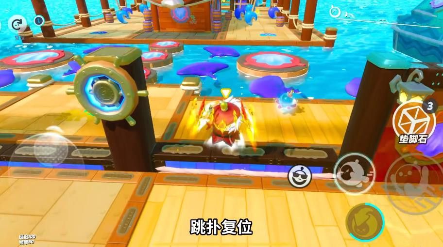 7、前面注意躲避摆锤,它的质量还是蛮大的,最后还有一个小的复位点,跳扑复位,再往前斜坡一直按跳会更快一些。