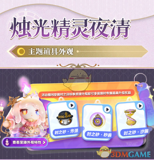 诞生于黑暗的烛光精灵夜清、追寻正义的执法官布谷、收割时间的渡鸦阿舍尔,三位时间旅者集结蛋仔岛。