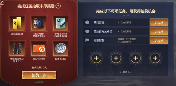 3、抽奖次数可以通过完成任务以及邀请好友完成预约获得。