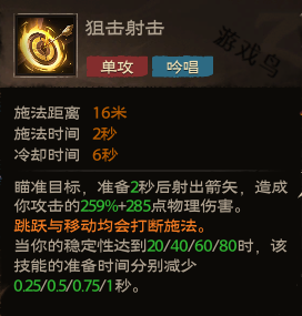 效果:瞄准目标,准备2秒后射出箭矢,造成你攻击的259%+285点物理伤害。