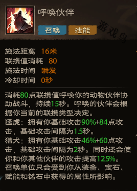 效果:消耗80点联携值呼唤你的动物伙伴协助战斗,持续15秒。