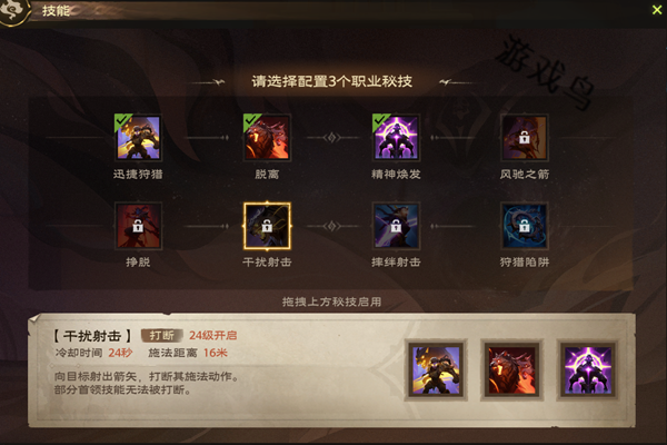 效果:向目标射出箭矢,打断其施法动作。部分首领技能无法被打断。
