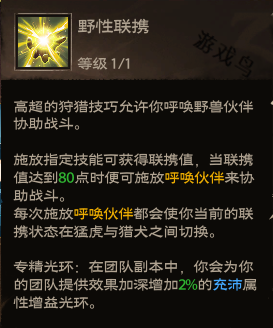 效果:野性射击降低冷却并额外获得联携值,呼唤伙伴额外造成伤害