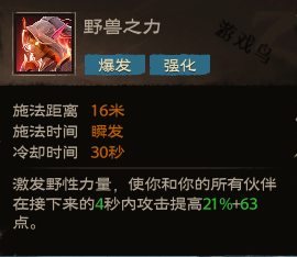 效果:激发野性力量,使你和你的所有伙伴在接下来的4秒内攻击提高21%+63点。