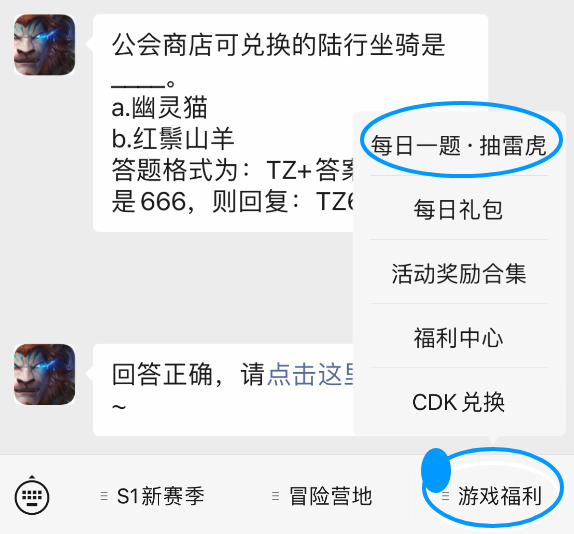2、点击右下角的【游戏福利】,点击【每日一题】