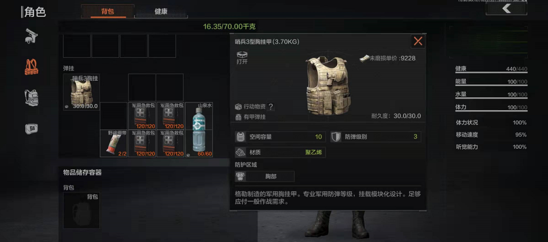 当然,3-4级的弹挂甲有不少会一定程度上影响移动速度,如果很介意的话可以选择“哨兵3型胸挂甲”这样对移速无影响的装备。