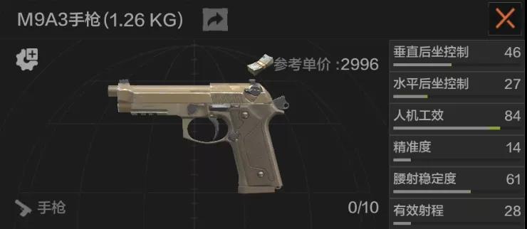 M9A3是使用9×19毫米子弹的手枪中性价比不错的一把。人机高、射速快,而且可以通过改枪加装瞄具、消音,甚至还可以选择17发的大弹匣。大家在打潜入的时候,有时就会默认持有这把手枪,老皮个人还是比较喜欢的。
