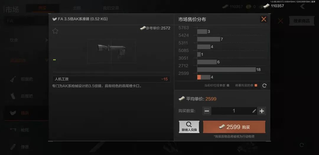 微光夜视仪本身不需要主动光源,是一种被动式成像系统,因此,它克服了主动式红外夜视仪容易自我暴露的缺点,更适合部队夜战使用,虽然目前暗区中的世界是没有黑夜的,目前“FA3.5倍AK系列准镜”以低廉的价格为优势,仍然有不少先锋会选配。