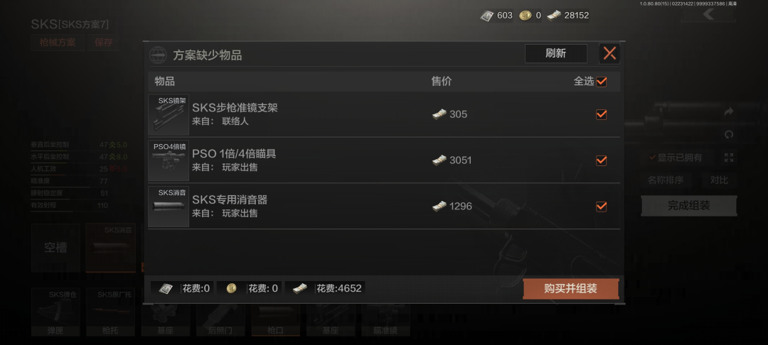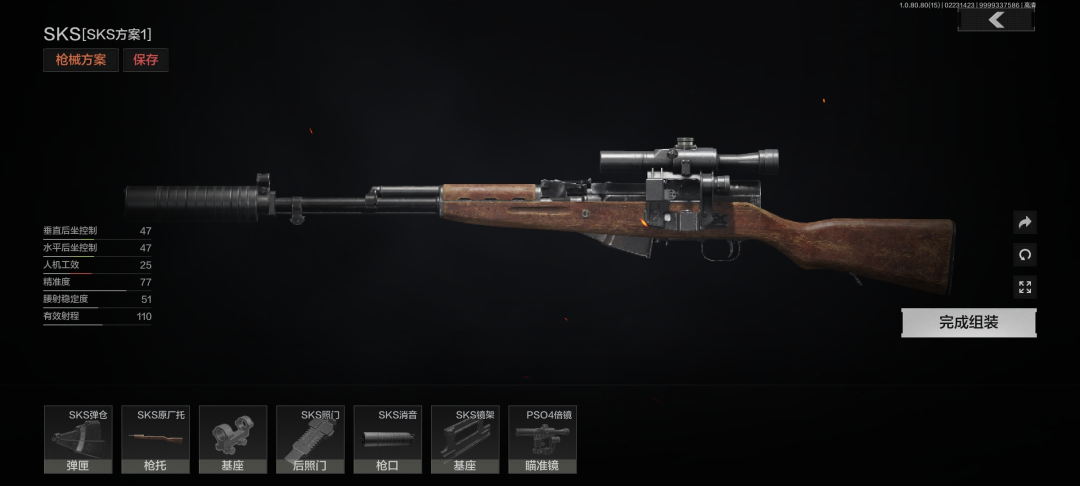 半自动武器中,我比较推荐SKS。这把武器几乎所有配件都可以用低价材料从商人处兑换,可以配备性能不俗但价格低廉的PSO高倍镜,一把满配的SKS成本在1W左右。它使用的7.62x39口径子弹中性能最好的BP子弹价格也并不高,只要不是把家底都亏没了的先锋,都能轻松负担这样一把武器。