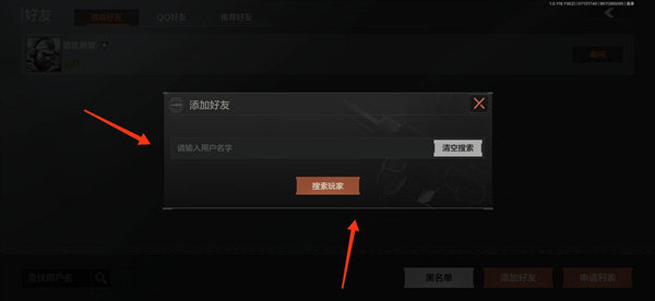 3、然后就就会弹出添加好友的框框,在框里面去输入用户的名字,我们再去点击搜索玩家;
