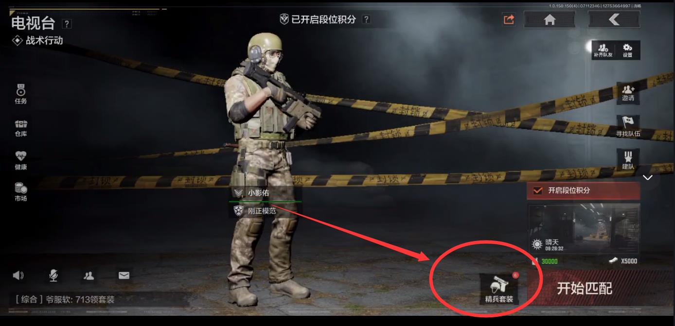 4、进入页面电视台页面后,点击右下方的【精兵套装】;