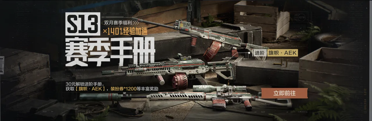 手册内除了大量枪械涂装和套装券外,依旧会有1200装扮券可供先锋们解锁获取,同时解锁进阶手册可获得金色品质枪械涂装【旗帜·AEK】,解锁典藏进阶手册获得典藏限定外观套装【行走深空机能套装】!