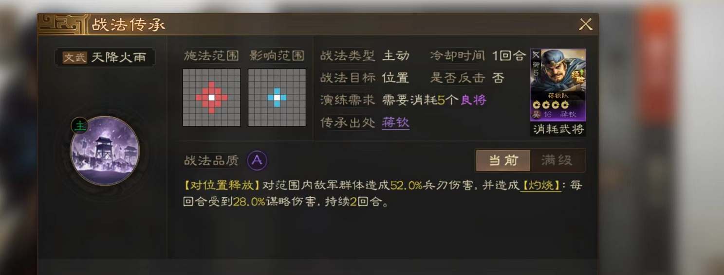 1、游戏内每个武将都会自带主要战法,传承战法则是需要利用传承功能分解其他武将来进行演练,演练成功后再给培养的角色学习;