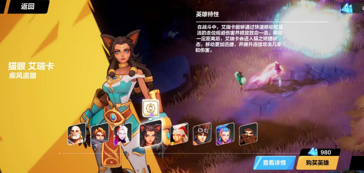俗称“猫女”,特点是移动之后会获得BUFF,BUFF期间猫女的各方面能力都会得到大幅增强,简单理解就是风一样的女子,跑得快伤害高,很帅很有趣也很强的英雄。缺点也很致命,980原晶购买,不差钱的玩家可以选择猫女。