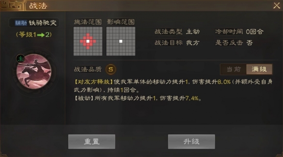 【被动】所有我军移动力提升1.伤害提升7.4%。