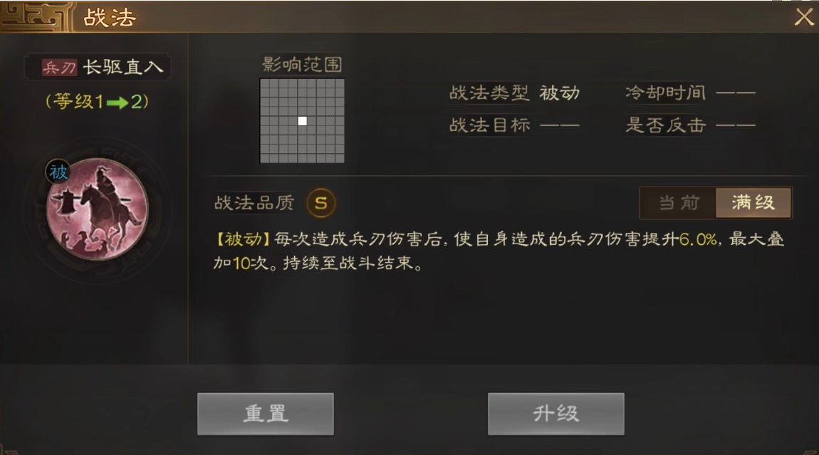 [被动]每次造成兵7伤害后,使白身造成的兵刃伤害提升6.0%.最大叠加10次。持续至战斗结束