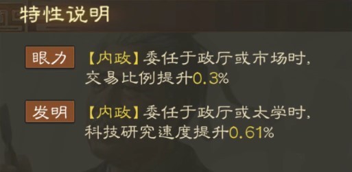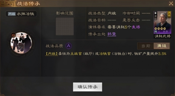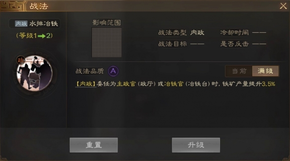 [内政]委任为主政官(政厅)或冶铁官(冶铁台)时,铁矿产量提升3.5%